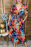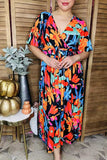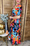 Multi color floral printed short sleeve maxi women dress w/v-neckline XCH16198(AS5)