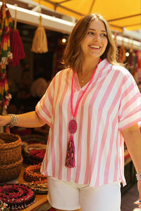 Plus size women clothing wholesale Pink striped v-neckline with short sleeve BQ15941