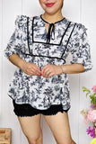 Shop western Horse riding printed baby doll short sleeves women blouse GJQ16135 FS5
