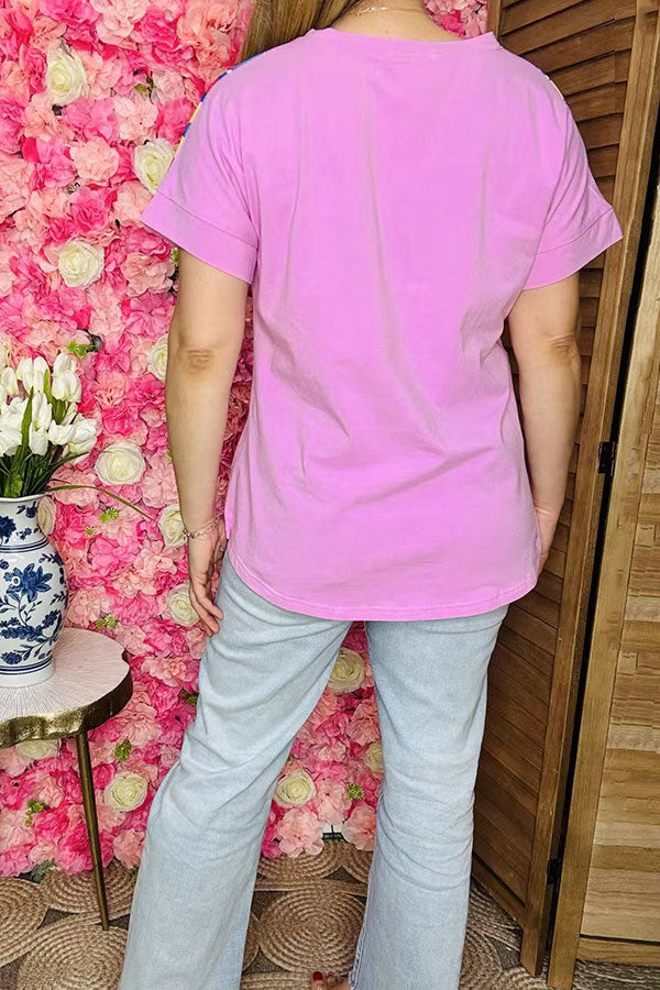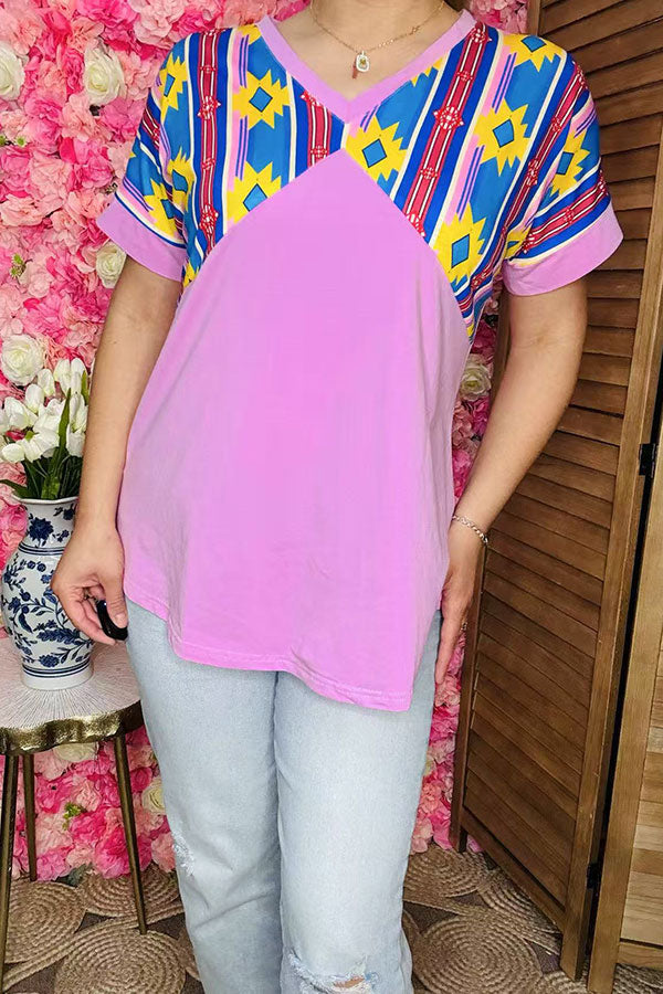 USA women clothing store Purple & Aztec printed short sleeve girls top GJQ10632 (ES13)