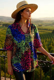 Western animal printed color block short sleeve women blouse GJQ16297 IS6