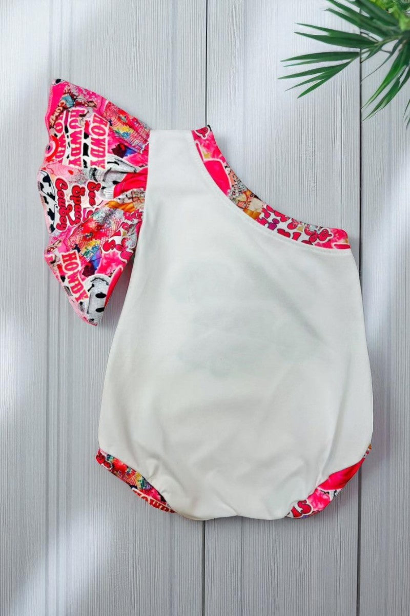Western "LET'S GO GIRLS" disco ball one ruffle sleeve baby bubble romper 1149WY A13S2