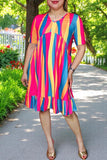 Wholesale women's dress Multicolor striped short sleeves & ruffle hem YMY16003.(DS2)