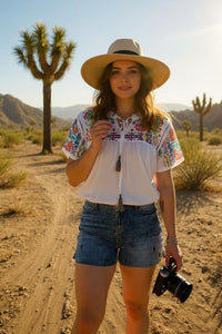 • Shorts features with cactus embroidery with washed denim fabric & pockets.