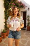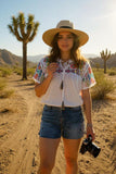 Women's shorts wholesale Blue denim shorts w/aqua cactus embroidery J527 IS7