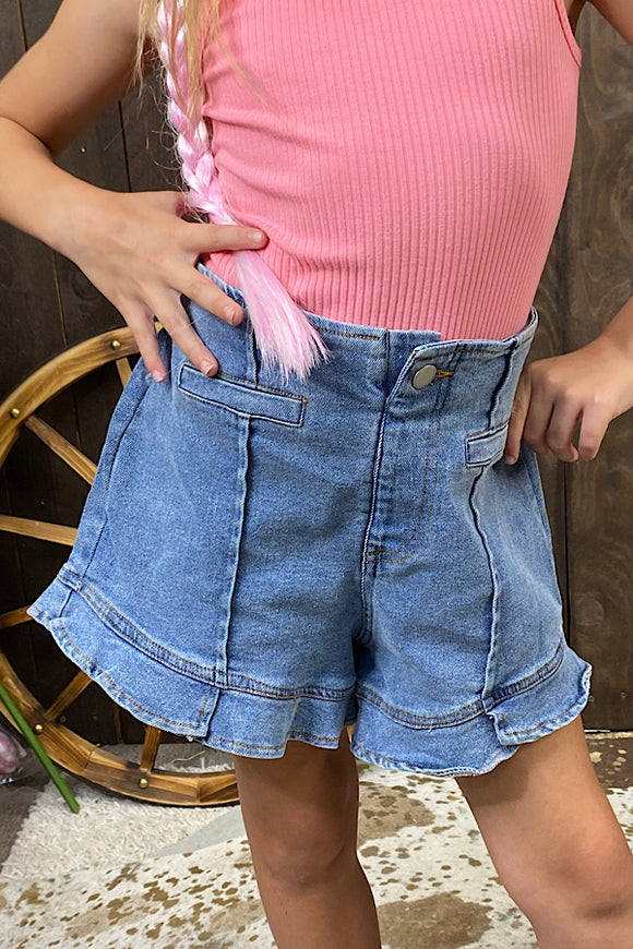 DLH2568 Kids solid black leather girls shorts (A4S5)