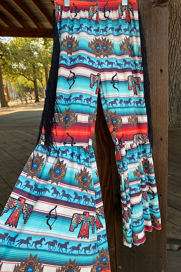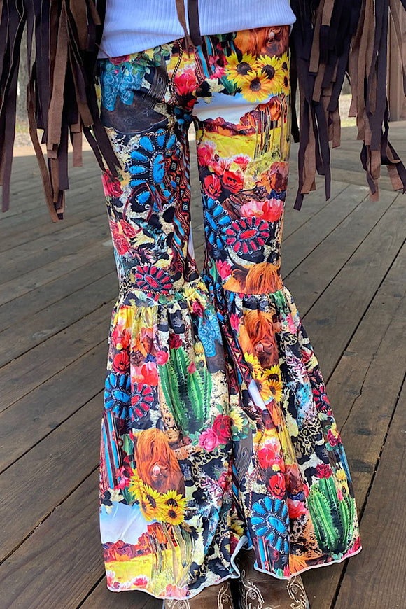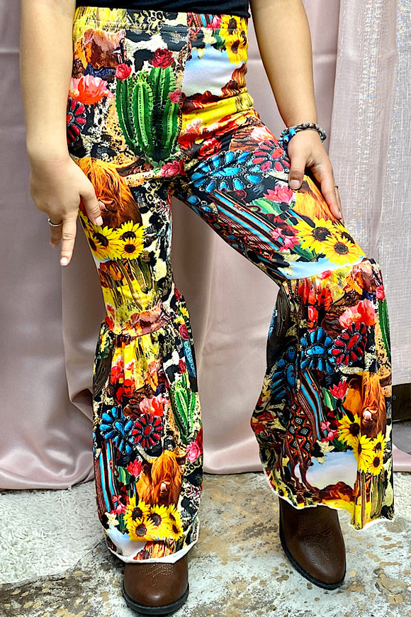 Western denim brown leopard bell bottom jeans girls pant DLH2744 (A11S7)