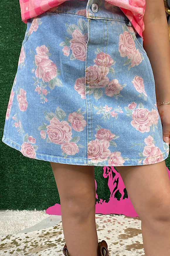 DLH2758 Sunflower prints fringe trim girls skirts (A4S4)