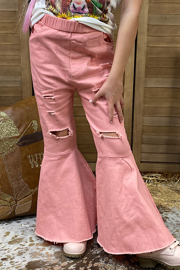 Western Pink distressed denim pant girls jeans DLH2805 (A11S7)