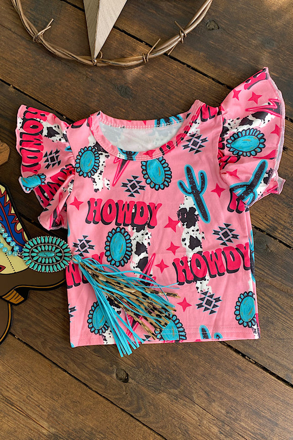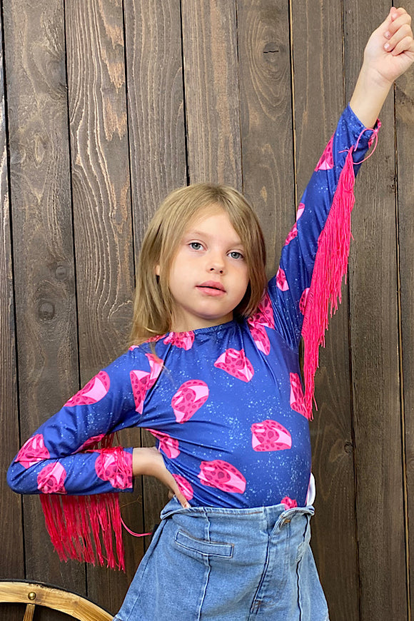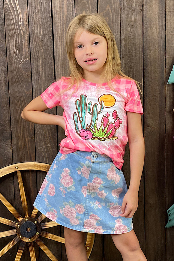 DLH2733 STUCK on you leopard prints cactus & hearts raglan girls top (A7S7)