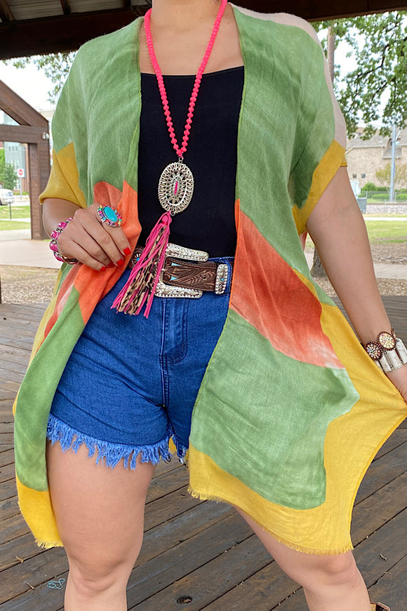 Shop Western Multi color block tribal printed kimono w/tassels YZ207033 HS1