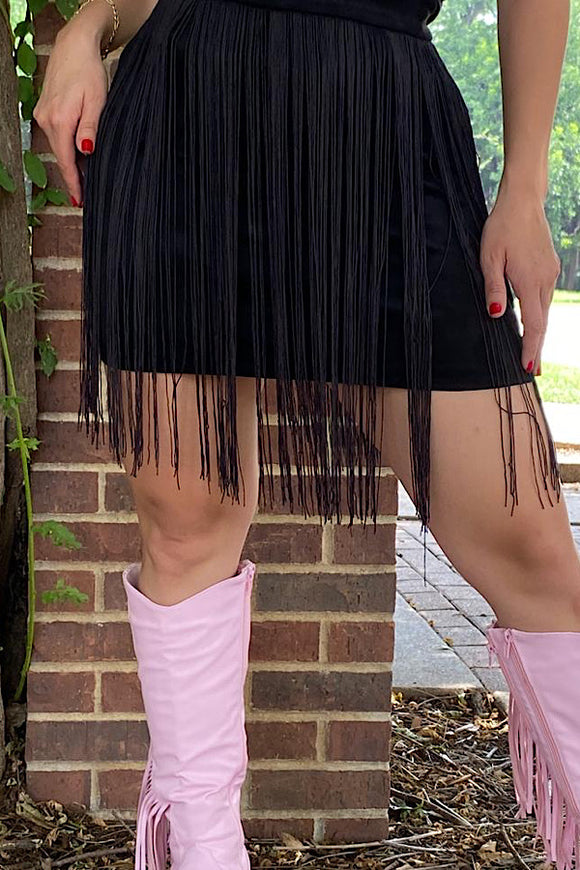 Plus size Black fringe trim asymetric hem faux suede skirt BQ14114 IS11