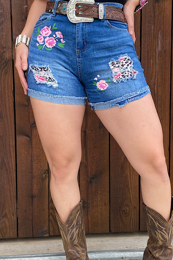 Leopard denim women shorts w/holes and pockets IS18 DLH14790