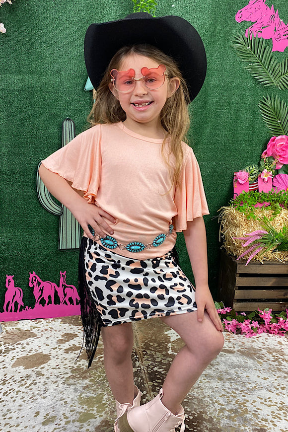 DLH2344 Pink leopard fringe skirt skirt girl set