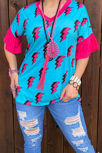 YMY8795 Blue/fuchsia Flash printed top (ES12)